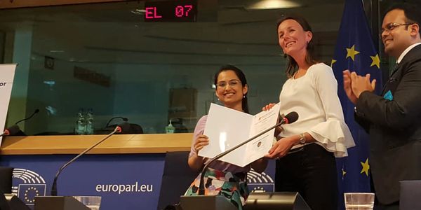 Receiving LEADERSHIP AWARD at EUROPEAN PARLIAMENT BRUSSELS